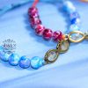 دستبند با پلاک ترکیبی رزین روی فلز طلایی رنگ با طرح بی نهایت و گل های ریز بهاری