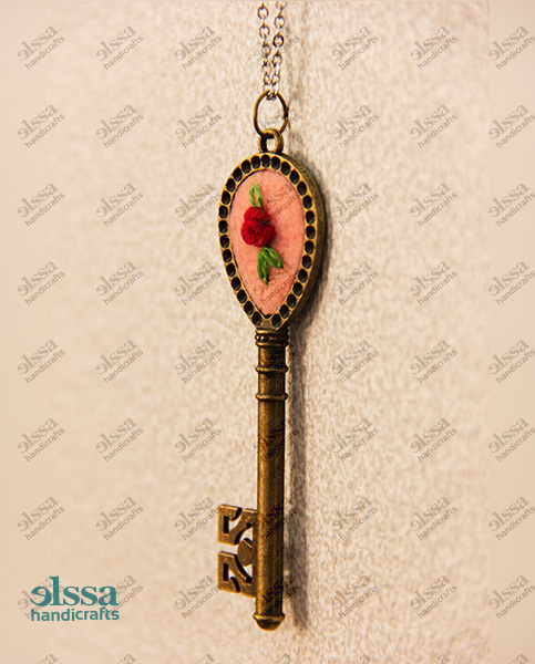 گردن آویز گلدوزی شده با دست با فرم کلید