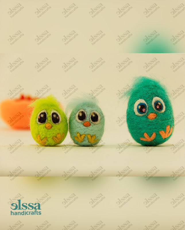 سه عدد جوجه کچه کاری شده با دست. به همراه یک آشیانه کچه کاری شده.