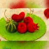 شامل یک آدم برفی کچه کاری شده، سه عدد انار کچه کاری شده ویک عدد هندوانه کچه کاری شده. به همراه یک استند تبریک یلدا.